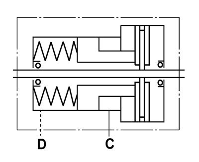 • jarru avautuu kun avautumisporttiin johdetaan paine